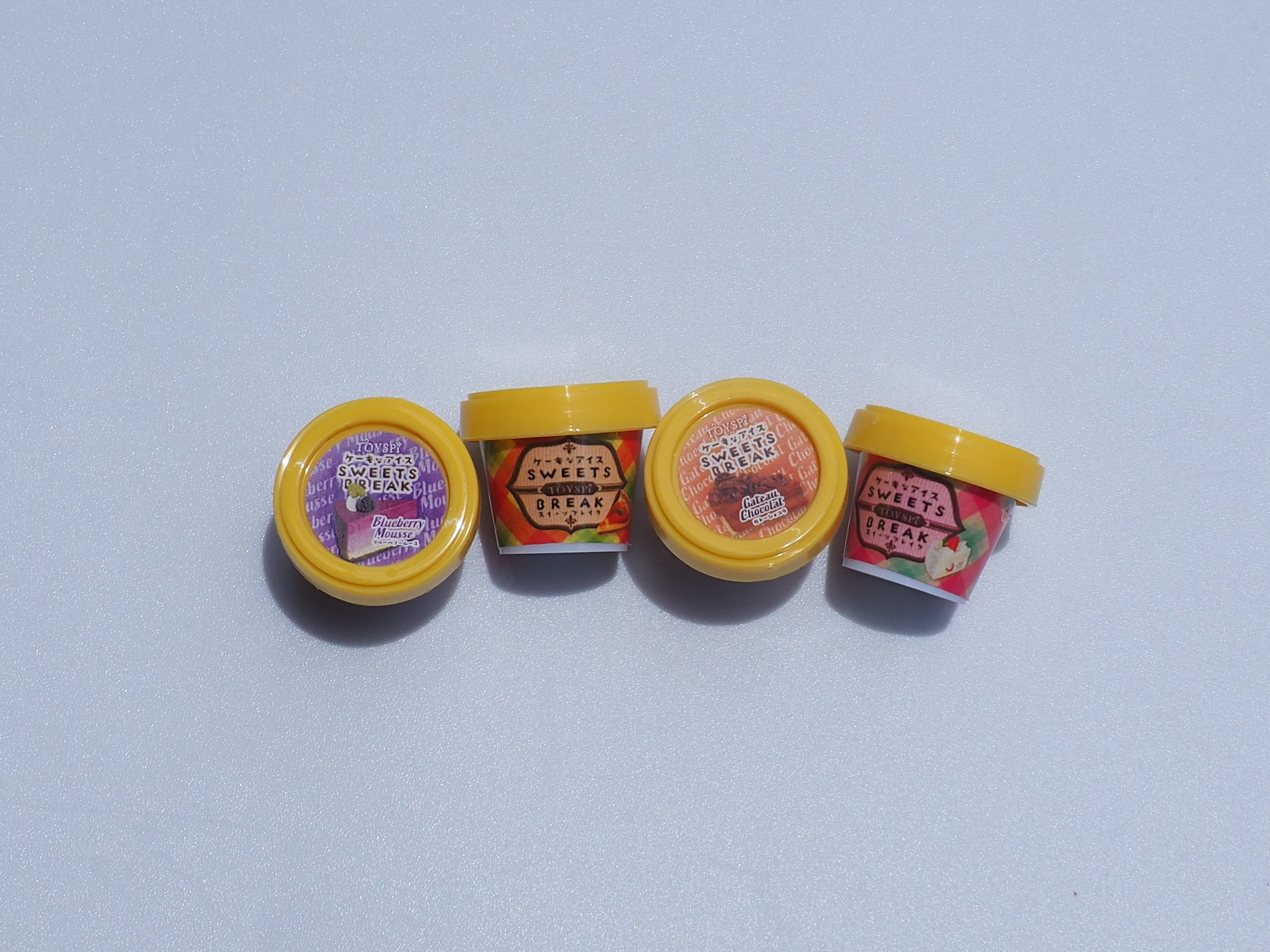 袋&駄菓子入り!ミニチュアアイスマスコット3①スイーツテイストカップアイス4個入り